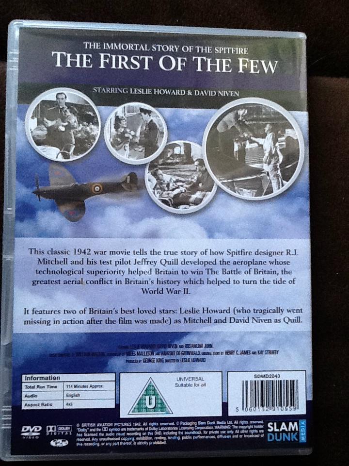 Leslie Howard 2014: Back in Stock. Order here. We are based in South London near Croydon and if preferred this item can be picked up by appointment. Just e-mail here. The ultimate story on the birth of probaly the greatest aircraft ever to see the skies, the spitfire. UK Dvd gallery added. The film features two of Britain’s best-loved stars: Leslie Howard (who tragically went missing in action after this film was made) as Mitchell and David Niven as Quill. Rosamund John also stars. Odeon Entertainment re-released it in March 2011, firstly as part of a 3 Dvd Best of British Collection boxset and then on its own. The new release had different artwork which was quite boring and lazy really. The original release (and the one offered here) had blue as the primal colour and represented the blue of the skies of the Battle of Britain and perfectly captured the film even though it is in black & white; the re-release just has a bog-standard photo-still from the movie and a gaudy orange as its primal colour. Whatever the release there is only one print and it has not been remastered. Consequently the quality of the film can be poor at times but since there is no other alternative what can you do? Still a wonderful film and I would recommend it to anyone at all interested in this mercurial plane. The wonderful and irreplaceable Leslie Howard must have been 48 or 49 when he starred and directed the film yet he still looks so young! In fact he never seemed to age. He was nearly 2 decades older than Niven and yet they look the same age! My own personal thoughts on the film is if you put aside the Spitfires for awhile, this is a heavyweight battle between the purveyors of easy British charm, Howard & Niven. Rosamund John was a fine actress but here she just gets pushed to the side of the screen. And the winner on points is Howard. This is now out-of-print and becoming increasingly hard to find. Distributors are no longer able to get this title. July 2014: 1 in stock. Below are scans from the UK. Click on each for bigger scans. Condition: Dvd & cover 'Like New'. |