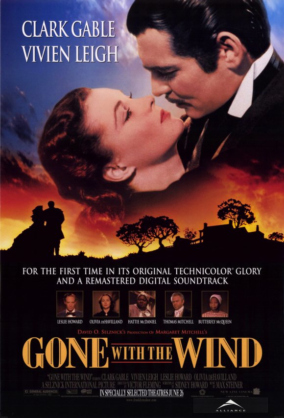 But its appeal to audiences lay elsewhere - in the way it took an enormous subject the American Civil War, and made it the background to the adventures and misadventures of, essentially, four people. Thus it became an intimate spectacular, a small story told on an epic scale. It's therefore a movie set in the Civil War but not actually about the Civil War. That's going on all the time, of course, and most graphically is it illustrated (e.g. the aftermath of the battle of Atlanta), but apart from knowing who's winning and who's losing we're not bothered with too many details. What concerns the film, and by extension us, is what's happening to Scarlett and Rhett (Vivien Leigh and Clark Gable) and Ashley and Melanie (Leslie Howard and Olivia de Havilland). Stories about the making of the picture have filled books: the role of Scarlett O'Hara was so coveted that almost every young female star in Hollywood tested for it; David Selznick, however, eager to find a new face (and, of course, to gain maximum publicity) organised a nationwide two-year search for the perfect Scarlett before eventually signing the compara- tively unknown Vivien Leigh; the original director, George Cukor, was replaced at Gable's insistence by Victor Fleming, who, because of illness, was in turn replaced by Sam Wood; writers as diverse as Scott Fitzgerald and Ben Hecht had a go at reducing Margaret Mitchell's book to filmable length; an early choice for Rhett Butler was Errol Flynn and so on.