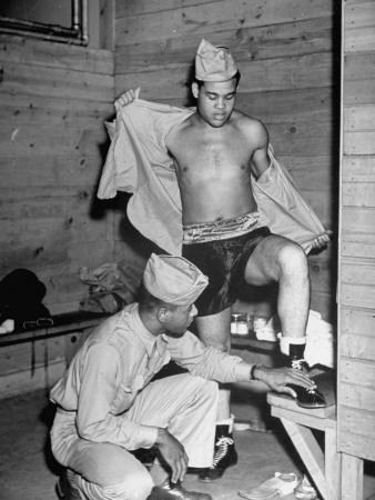 | Joe Louis Joe Louis signed items @ ebay.com (direct link to signed items) - grab yourself a Louis treasure Joseph Louis Barrow or Joe Louis as the world will always remember him as. The Brown Bomber. Outside the ring he was the epitome of all things great in sport: a gentleman, courteous (apart from when Jersey Joe Walcott was getting in his face on the 1970s nostalgia programme The Way It Was recalling their bouts and then his tetchy behaviour was only remarkable because it was Joe Louis being tetchy! Or an irritation with Tony Galento on the same programme but anyone sitting next to Galento would be made to feel irritable!), hardworking, honest, as unassuming as say a Cary Cooper or a Jimmy Stewart. If he could have acted he would have been perfect for It's A Wonderful Life if 'race' hadn't been an issue in those days. By that I mean he is a true American hero. An icon of the American spirit, the American way of life. Just three defeats in his glittering career. Three! And two of these were at the end of his career when the sole factor for fighting was money. They were to Ezzard Charles and Rocky Marciano. He transcended boxing. He transcended sport for that matter. I would venture that with Jesse Owens he is the most important sportsman of the 20th century if only for the fact that he was the first African American to become a nationwide icon within the United States. He and Owens were to sport what Abraham Lincoln was to politics or what Elvis was to music Which makes his fall from grace or the more inexplicable. By the time of his death in 1981 he was a cocaine addict working as a 'meet'n'greet' doorman at the big Las Vegas casinos. As far as I can tell the only person outside of his family who went out of his way to help Joe over the years was his great nemesis, the German Max Schmeling, who he fought twice. Their friendship is one of the most touching you will read about in sport. When the widow of Louis calls Max a 'true friend' then you know it was something special. Of course this should never of happened. Plenty of people made fortunes on the back of Joe Louis; couldn't they have helped? His descent doesn't reflect badly on Louis; just on those people who could have helped. Shame on them. Real name: Joseph Louis Barrow Boxing recordTotal fights: 72 A BRIEF HISTORY OF A LEGEND: Joe Louis (Joseph Louis Barrow - May 13, 1914 - April 12, 1981), was the world heavyweight boxing champion from 1937 to 1949. He is considered to be one of the greatest heavyweights of all time. Nicknamed Brown Bomber, Louis helped elevate boxing from a nadir in popularity in the post-Jack Dempsey era by establishing a reputation as an honest, hardworking fighter at a time when the sport was dominated by gambling interests. Louis's championship reign lasted 140 consecutive months, during which he participated in 27 championship fights, 26 championship fights during his reign; the 27th, against Ezzard Charles, was a challenge to Charles' heavyweight title and so is not included in Louis' reign. All in all, Joe was victorious in 25 successful title defenses, a record for the heavyweight division. He was a credit to his race - the human race In 2005, Louis was named the greatest heavyweight of all time by the International Boxing Research Organization, and was ranked number one on The Ring's list of 100 Greatest Punchers of All Time. Paul Page, Dec. 2012 MORE: Joe Louis defended his heavyweight boxing title an astonishing twenty-five times and reigned as world champion for more than eleven years. He got more column inches of newspaper coverage in the 1930s than FDR did. FDR actually visited him before a fight - that was how famous he was. His racially and politically charged defeat of Max Schmeling (though Schmeling was never a Nazi and about as far removed from being a rascist as is possible to be) in 1938 made Louis a national hero. But as important as his record is what he meant to African-Americans: at a time when the boxing ring was the only venue where black and white could meet on equal terms, Louis embodied all their hopes for dignity and equality. He was passionate about golf. According to his son the only time he was called off the golf course was not at the birth of his children but when he was told Max Schmeling was visiting him. I remember seeing Joe get off a plane and Schmeling was waiting for him. The look of joy when both first saw each other is a sight to behold. No words can convey that special bond the two had forged by the battles in the ring the two shared. Like movies I think the iconography of Joe Louis is also helped by the stark strength of black & white over colour. The flickering, ghostlike imagery gives a distance to us, the audience now. Forever preserved in black & while while we have moved onto colour. Progress it is called. That distance is always needed from the star to the fan. Garbo & Brando had that distance; Joe Louis has it as he is trapped inside the black & white film far, far away. I don't think we ever knew the real Joe Louis. Outside of the ring, he was very reserved. It was because he came after Jack Johnson. For various reasons, his manager and promoter had to made his acceptable to the white American public for the fundamental reason that if they accepted him he would get a world title shot. Sounds weird now but that was what it was like in the 1930s. So he had to wear a mask. He had to be polite at all times, unthreatening outside the ring. He kept this mask on right up until he died. All very well but we never got to see the real Louis. But you can see it in his soulful eyes, that there is a hurt there, sometimes an anger. I think it is safe to say that the Brown Bomber remains an enigma. When he first made money he helped all his brothers and sisters by paying for their homes, healthcare etc. Jack "Chappy" Blackburn was his trainer. Initially he didn't want to take Louis on as he thought it would be impossible for him to get any meaningful bouts because of