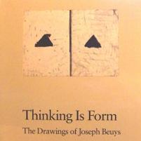 Beuys, like Marcel Duchamp and Andy Warhol, precisely orchestrated his public image, building a personal myth that has the power to bind together his entire oeuvre. Thinking Is Form: The Drawings of Joseph Beuys (pictured right) attempts to break through the mass of obscurantist writing about Joseph Beuys, to introduce him in a simple and clear manner through his individual drawings, used here as the basis for discussions of his life, art and ideas. Some employ such media as hare's blood or margarine, or are realized on envelopes, emphasizing their function as a reservoir of ideas for Beuy's sculpture, "actions", performance art and other enterprises.