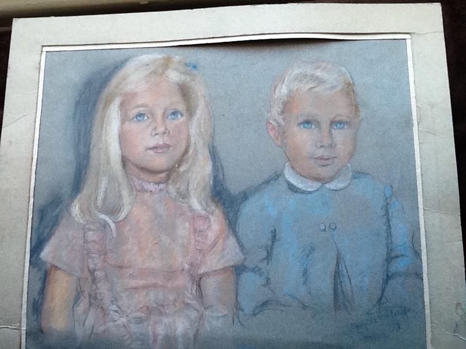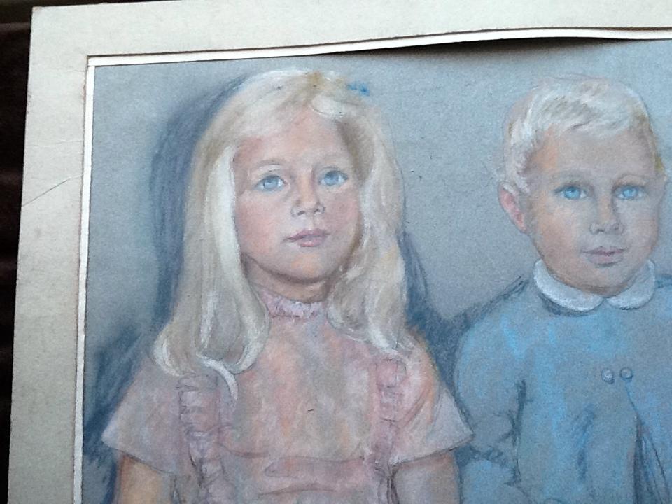 Marjorie Wilding ~ Children Charming piece. A study drawing of 2 children. Pastel. Image size: 15" x 13" inches. Comes with mount.