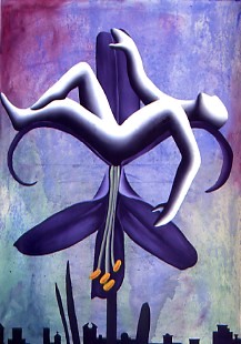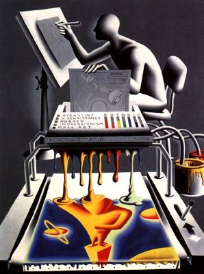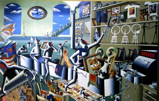 In 1988 he founded Kostabi World – a studio, gallery and office complex known for openly employing painting assistants and idea people. Pity the idea people coudn't have come up with more ideas. Seemed they were rather lazy.