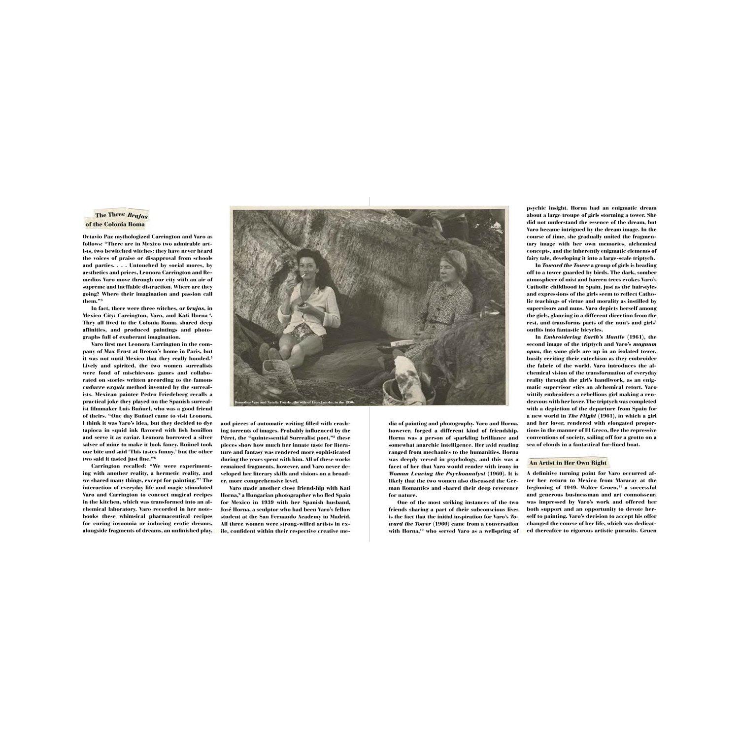 Remedios Varo Here's a treasure of a book I would highly recommend. Released in 2012, Remedios Varo: The Mexican Years charts those mythical years and even includes a picture of her with Trotsky's wife. More below plus scans. Remedios Varo: The Mexican Years offers a definitive survey of the life and work of a singularly appealing and mysterious Surrealist painter. Born and raised in Spain, Remedios Varo received her earliest training in Madrid before fleeing the Spanish Civil War in 1937 to join Surrealist circles in Paris. The outbreak of World War II forced her to take refuge in Mexico, where she remained until her untimely death in 1963, and where she created her most enduring work. This is the period which defines her work, where she stepped from reality and into the dreamhouse of her ethereal surrealness to become forever Remedios Varo, her eternal return. Known as one of the three "brujas" (witches) active in the Mexico City art milieu, Varo shared an interest in esotericism with fellow painter Leonora Carrington and a range of interests in science, philosophy and the literature of German Romanticism with the photographer Kati Horna. For some ten years, from the mid-1950s until her death in 1963, Varo devoted herself to creating an extraordinary dreamlike oeuvre, on the threshold between mysticism and modernity. Her beautifully crafted images of medieval interiors, occult workshops and androgynous figures engaged in alchemical pursuits evoke the eerie allegories of Hieronymus Bosch, esoteric engravings and the charm and lure of fairytales. This catalogue includes a complete illustrated chronology with never before published images and describes Varo's role in the Mexican Surrealist movement and her relations with Luis Buñuel, Octavio Paz, Benjamin Péret, Alice Rahon, Wolfgang Paalen and many others. MORE: Remedios Varo (1908-1963) fled the Spanish Civil War and then World War II to settle in Mexico where she helped establish a Mexican Surrealist movement and painted visions that combined modernism with mysticism. She was married to the leading French Surrealist Benjamin Péret.