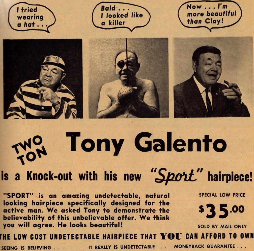 Tony Galento "I'll moida da bum". "I never hoid of da bum." His thoughts on William Shakespeare: "I'll moida da bum". Contemplating Sartre and his form of existentialism: "I'll moida da bum". Or Charles Dickens and David Copperfield: "I'll moida da bums". OK some of them I made up but he could have said them. Tony Galento (b. Domenico Antonio Galento) may have been from New Jersey but it may as well have been from another planet. Heck, when Max Baer caught him on the phone he asked to be put through to his interpreter. The language of charisma? Whenever I think of 'Two Ton' Tony Galento I can't help but smile. The thought of him makes me laugh for he was intentionally very funny. I know he was a dirty fighter but he even made this funny. He put down his losing to Joe Louis to "not fouling him enough". His training consisted of eating and drinking whatever he like, whenever he liked. Though he took the Louis fight seriously by not drinking alcohol for two days before the fight. Mind you he could fight. Though he lost to Louis he did knock him down so he must of been a hell of a fighter. He even had over 50 knockouts in his career. Incredibly brave as well. If he had trained properly what might he have done? Jack Dempsey saw his potential and trained him briefly though he gave up disgusted by his lack of desire to train. For the Max Baer fight he deliberately didn't wash so as to put off his opponent. Bare did later comment on the BO though it didn't help 'Two Ton' as he lost the bout. If a Hollywood scriptwriter had made Tony Galento up then he would have been told to get lost as his character was too far-fetched! If you don't know about Tony I urge you to find out about him as he was, at the very least, a colourful, charismatic character. He was short, fat, revelled in his fatness, was balding, wore a bad hairpiece later in life and got paid for wearing a bad hairpiece (see below). Whatever he was or wasn't he was always watchable. When his boxing career was over he appeared with Brando in On The Waterfront, made B movies and once knocked Jackie Gleason clean out. He pro-wrestled, wrestled an octopus, boxed a kangaroo and fought a Russian bear. Ok, these are not politically correct but you have to admit, unusual if tasteless. Funny guy. If you have any one-line classics from Galento which I can put here just e-mail me them. Boxing record TWO TON TONY V JOE LOUIS (THE FAT MAN'S DEFINING MOMENT): Beetle-browed, nearly bald, a head that rode his collarbones like a bowling ball returning on rails, his waist size more than half his five-foot-eight height, Two Ton Tony Galento appeared nearly square, his legs two broomsticks jammed into a vertical hay bale. By all measures he stood no chance when he stepped into the ring against the Brown Bomber, Joe Louis, the finest heavyweight of his generation, in Yankee Stadium on a June night in 1939. “I’ll moida da bum,” Galento predicted, and though Louis was no bum, Tony, the Falstaff of boxing, lifted him from the canvas with a single left hook and entered the record books as one of the few men to put the great Louis down. A palooka, a thug, a vibrant appetite of a man, he scrapped his way out of the streets and into the brightest light in American life. For two splendid seconds he stood on the canvas at Yankee Stadium, the great Joe Louis stretched out before him, champ of the world, the toughest man alive, the mythical hero of the waterfront, of Orange, New Jersey, of an American nation little more than a year away from war... Joseph Monninger, 2007 MORE: Tony had a small part in the classic Marlon Brando movie, On The Waterfront. It was the idea of the screenwriter, Budd Schulberg, to use ex-fighters in the movie to add authenticity rather than employ Hollywood old hands. Three of those who appeared in the movie had fought Joe Louis. On set one day Galento knocked down the director, Kazan, who didn't see the funny side of being put down by 'Two Ton Tony'. FURTHER READING: Two Ton: One Night, One Fight -Tony Galento v. Joe Louis Affiliate/Advertising policy.