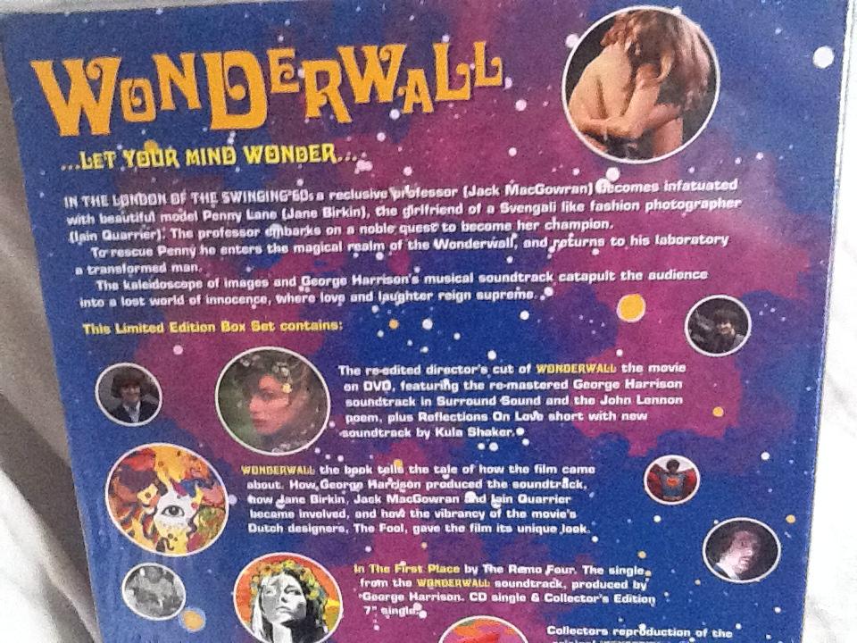 The re-edited director's cut of WONDERWALL: the movie on DVD, featuring the re-mastered George Harrison soundtrack in Surround Sound and the John Lennon poem, plus Reflections On Love short with new soundtrack by Kula Shaker.
