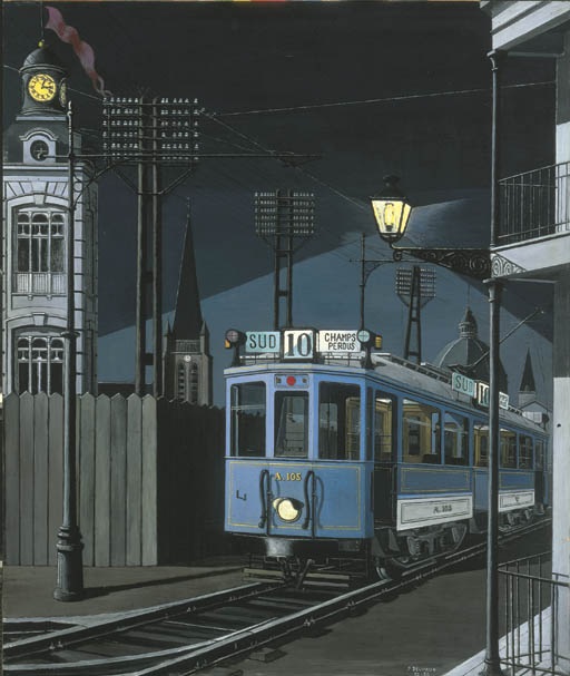 Delvaux's paintings occupy a unique space in Surrealist art. Unlike the violent juxtapositions of Dalí or the conceptual wit of Magritte, Delvaux created sustained atmospheric worlds—nocturnal realms where time seems suspended, where mysterious women exist in states of trance-like contemplation, where trains and trams glide silently through deserted classical landscapes.